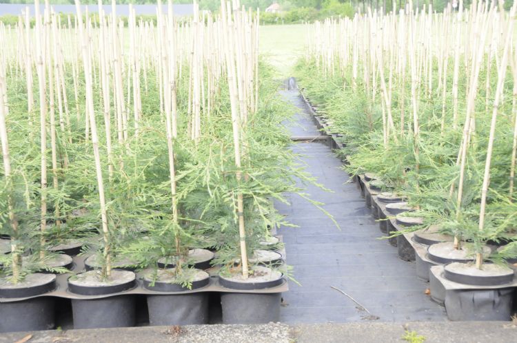 Hoe dan ook, voor Verbraeken is dit een ideale combi: overdag een stekploeg managen en 's avonds aan de slag in de eigen kwekerij. Hij zegt een aantal keren tijdens het interview: 'Ik moet er wel plezier in hebben.' Maar dat plezier zal ook weleens ver te zoeken zijn als hij bij nacht en ontij een partij coniferen moet rooien. Verbraeken: 'Omdat ik het erbij doe, zoek ik klanten uit die een beetje bij mij passen. Het liefst boomkwekers hier uit de buurt, en al helemaal geen buitenlandse handel. Als ik iets verkoop naar het buitenland, doe ik dat bij voorkeur via een andere kweker uit dit gebied. Ik probeer mijn teeltplan zo in te richten dat ik ongeveer vijftig procent van mijn planten mondeling kwijt kan, en meestal lukt het wel om ook de rest aan de man te brengen. Belangrijke klanten zijn onder andere Boomkwekerij Plantloon, Boomkwekerij Udenhout, M van den Oever, De Kuil en Gebr van Oirschot. Belangrijke producten zijn (✕Cuprocyparis leylandii) (De nieuwe naam van ✕Cupressocyparis leylandii RED), ILex acquifolium en diverse soorten Pinus, die zowel in de volle grond als op het containerveld worden gekweekt. Daarnaast ander plantgoed in P9. Overige producten gaan via websites als Tuinbouwmarktplaats. Verder heb ik een voorkeur voor klanten die hun partijen op tijd afroepen. Als ik bij de Diamant Groep aan het werk ben, kan ik niet op stel en sprong een paar planten klaarzetten. Dat kan op zijn snelst pas 's avonds. Daarnaast is ook afstand belangrijk. Als ik voor een boxpallet met een paar laurieren naar Zundert moet rijden, zijn die eigenlijk al te duur.'