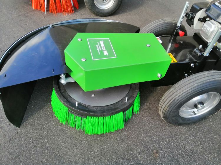 Op de Geotex PRO-machine kunnen drie borstelsystemen gemonteerd worden: de nieuwe Terrazza Geo TECH (TGT), de Weedee-onkruidborstel en de Terrazza-veegborstel Sweeper.