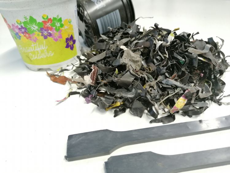 Hoewel het een arbeidsintensief proces is, blijkt uit proeven dat het afval van de kwekerij uiteindelijk te scheiden is. Het resultaat is volledig gereinigd extrusiemateriaal zonder aarderesten. Nitzsche: 'Een aantal trektesten heeft uitgewezen dat dat extrusiemateriaal niet zo sterk is als het virgin materiaal, maar wel heel taai wordt. De kanttekening hierbij is dat er additieven zijn toegevoegd om de samenwerking tussen PS en PP te stimuleren. Dat is ook een deel van het geheim van de smid, in dit geval Joris Schmidt. Als de taaiheid bij een bepaald product een rol speelt, kun je dit extrusiemateriaal daar goed voor inzetten. We hebben er bijvoorbeeld al plantstekers van gemaakt, die kwalitatief goed zijn. Daar zijn we heel blij mee.' Dus als je wat energie stopt in de scheiding van afval en voor de samensmelting van PP en PS additieven toevoegt, is het mogelijk om van dat granulaat een schoon product te maken, meent Nitzsche. 'Bovendien is de tuinaarde ook verwerkt; die kan de kringloop in. In feite hergebruik je de volledige originele afvalstroom, waarna er een nuttig product uit komt.'