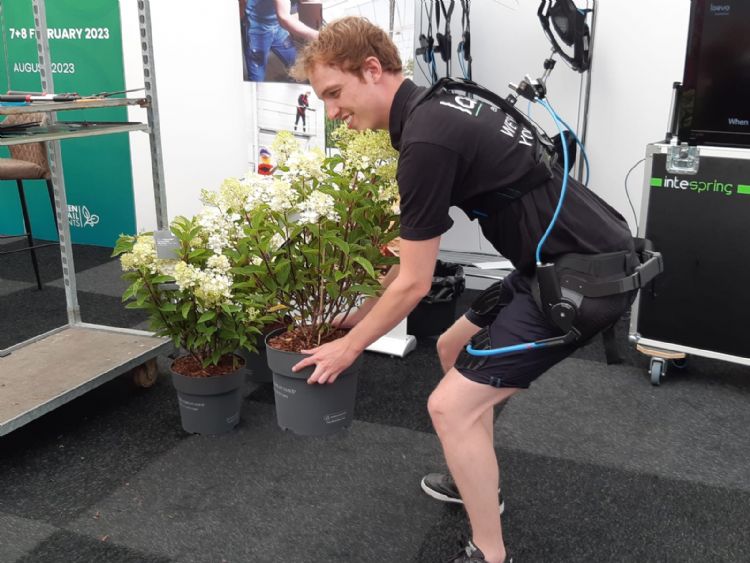 'Een exoskelet kan een oplossing zijn voor medewerkers die langdurig bukkend werk moeten doen op de kwekerij. Steeds bukken of iets optillen gaat makkelijker en geeft veel minder spanning in de rug', vertelt Bas Wagemaker van Laevo.