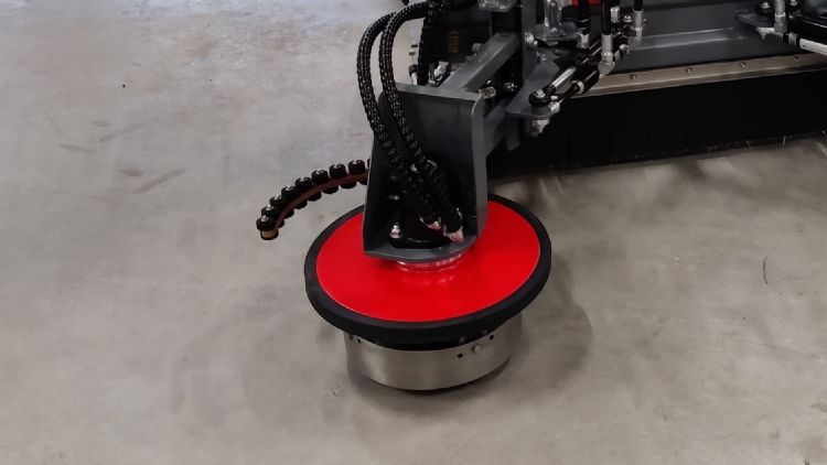 De machine is bodemvolgend en heeft een egaliserende werking, waarbij kloven en oneffenheden verdwijnen. Je bewerkt alleen de bovenste laag van de bodem en verstoort daardoor het bodemleven niet. Van Tuijl: 'Deze manier van onkruidverwijdering geeft geen problemen voor de bomen, want je beschadigt de wortels niet. Gebeurt dat wel, dan heeft dit nadelige gevolgen voor de groei van de bomen en dat is precies wat wij willen voorkomen. De machine kan gemakkelijk worden afgesteld, zonder dat daarvoor gereedschap nodig is. Dat geldt ook voor de zwenkunits, waarmee je desgewenst tot zeer dicht bij de stam kunt schoffelen. Het instellen van de schoffeldiepte gaat heel eenvoudig. Ook is de machine geschikt om tegen druppelslangen aan te schoffelen. Bij kleinere afstanden tussen de bomen kun je ook een zwenkunit met een kleinere diameter monteren. Op dit moment hebben we drie verschillende diameters, namelijk 20, 25 en 30 centimeter. Het aanlegvlak van de rotor is conisch en door middel van één bout gemakkelijk te wisselen.'