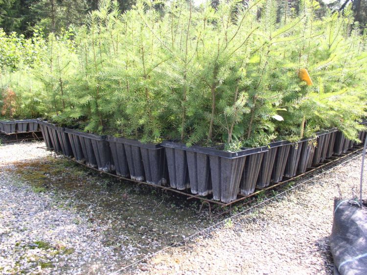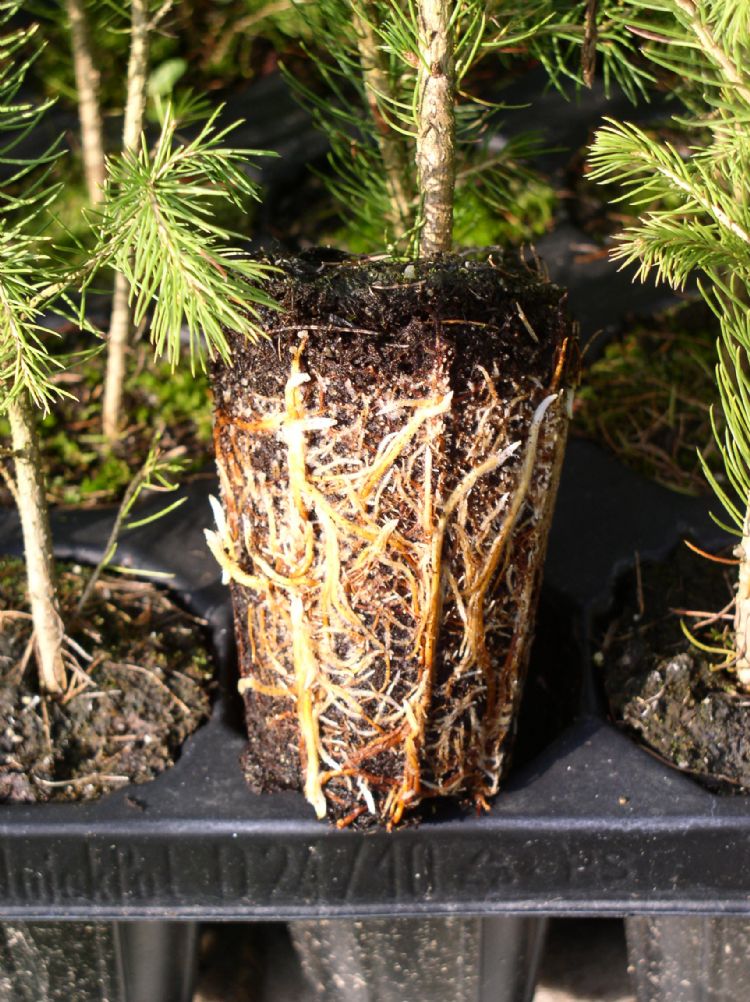 Zogenaamd pot-in-potsysteem: eerst stekken of zaaien in kleine trays (240-gaats); na de eerste beworteling worden de planten automatisch in een 60-gaats tray getransplanteerd