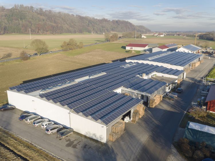 Een deel van de HerkuPlast-fabriek met zonnepanelen