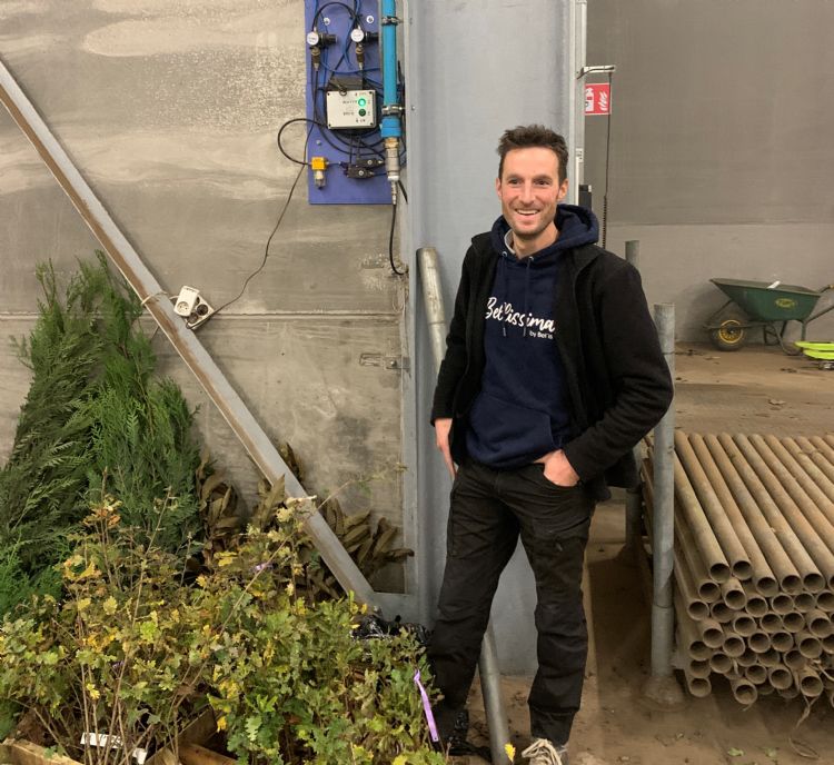 Mol vertelt dat het bedrijf waarvoor hij werkt al langer contacten onderhoudt met Agricult. 'Van de Ven zag hoe wij in perioden met een lage luchtvochtigheid het materiaal voor de afnemers nat hielden. Dat deden we met de nevel van een hogedrukspuit, met een lange slang op de haspel. Wij kuilen onze planten op met blote wortels in het zand en halen deze een dag voor levering naar binnen. Meestal staan ze dus een tot twee dagen in een van onze twee loodsen, waar ze gebost op pallets liggen. Met een hogedrukspuit is het behoorlijk arbeidsintensief om die kale wortels vochtig te houden. Dat geldt zeker in de droge periodes, als hoveniers, gemeenten en landschapsbeheerders hun materiaal komen ophalen.'