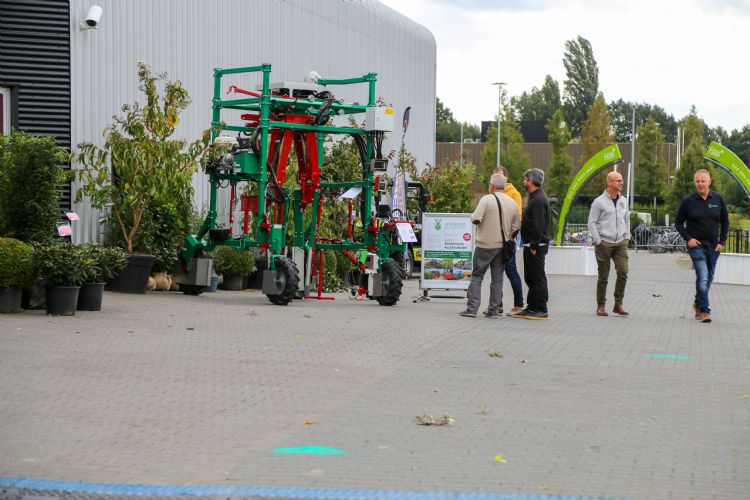 Er is aandacht voor precisietechnieken waarbij bijvoorbeeld de groei van een boom gedurende het seizoen kan worden gemonitord (AgroWizard in de praktijk). Daarnaast is er aandacht voor autonoom (zonder bestuurder) werkende trekkers (Nouws Mechanisatie BV en De Bruijn Mechanisatie BV) en werktuigendragers (Abemec) voor bijvoorbeeld de onkruidbestrijding. Ook wordt een machine getoond die camera-gestuurd onkruid kan spuiten, waarmee veel middel kan worden bespaard (Abemec). Er zijn diverse machines te zien voor het zaaien van boomkwekerijgewassen en de mechanische onkruidbeheersing, zoals schoffelen en wiedeggen (Schrauwen Machinebouw Zundert en Loon- en grondwerkbedrijf W. Huijbregts). Arie: "Hierbij zie je dat de machines steeds specifieker worden aangepast aan de omstandigheden in de boomkwekerij voor wat betreft de teeltsystemen en gewashoogte en -vorm. In de toekomst blijft aandacht voor goede spuittechniek belangrijk. Ook bij groene middelen, biostimulanten en bladmeststoffen is een goede bedekking van het gewas van belang. Door nieuwe spuittechnieken te gebruiken kan driftarm worden gespoten én kan het resultaat van de bespuitingen verbeteren, waardoor er middelen kunnen worden bespaard."