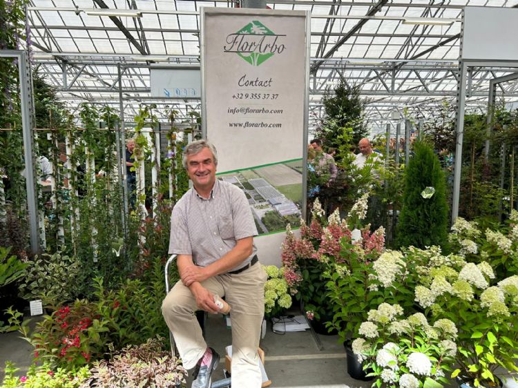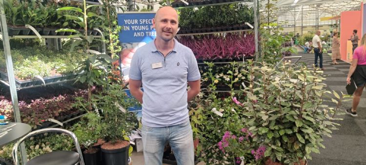 Luc Bonte (FlorArbo) wil een voet aan de grond zetten in de tuincentra en hoopt op de beurs veel contacten te leggen; specialist in de buitenafdeling van tuincentra.