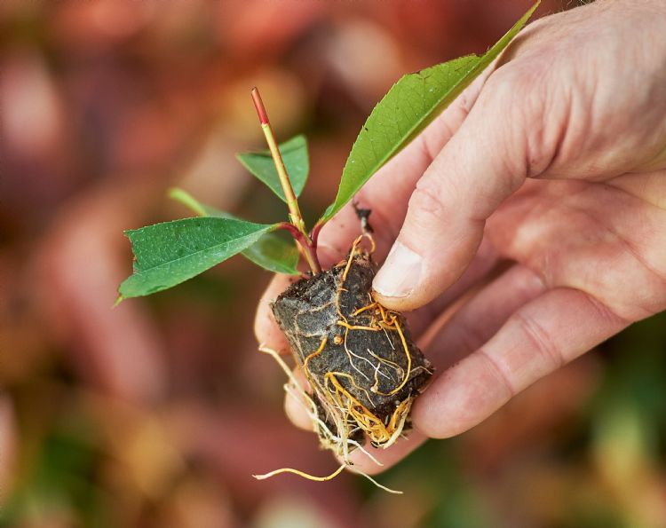 De schoonheid van bloeiende Magnolia gaat trouwens aan IBN voorbij. Hier draait alles om een goede beworteling. Met de 84-gaats trays waarin ze zijn geworteld, gaan ze in het voorjaar naar Magnolia-kwekers. Dan zijn het nog steeds miniplantjes. Voor ze naar kwekers gaan, is IBN er al een keer met de maaimachine overheen geweest om ze kort te houden. De focus van IBN ligt tenslotte volledig op de ontwikkeling van stevige wortels en niet op loofvorming. Goede beworteling zorgt ervoor dat de planten na het oppotten meteen hard kunnen gaan groeien. 'Dan geven ze gas. In zes tot acht weken tijd worden het dan Magnolia's van 50-60 centimeter hoog. Om een mooie vertakte plant te krijgen, maait de kweker ze een paar weken na het oppotten nog een keer en soms nog een tweede keer. Het afgemaaide materiaal krijgen we in juli weer terug als stek. Zo hebben we een teeltcyclus van precies een jaar.'