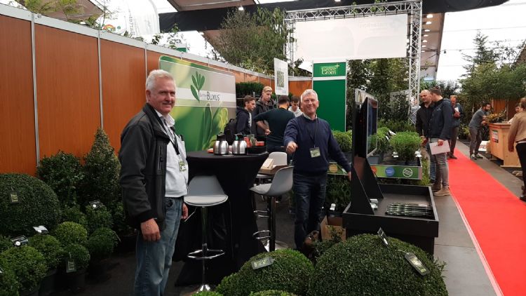 Didier Hermans met een giga-buxus stand van Herplant. Alles wat je nodig hebt voor Buxus en Taxus.