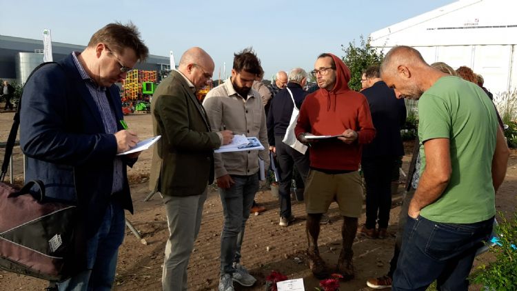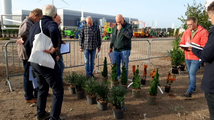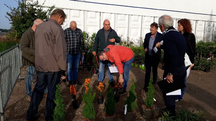 De jury neemt de ingezonden planten nauwkeurig onder de loep.