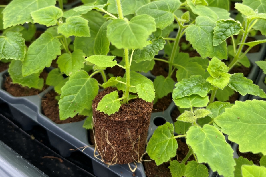 | | André Boereboom bij Paulownia elongata 'Futuro'-plantgoed twaalf weken na oppotten |