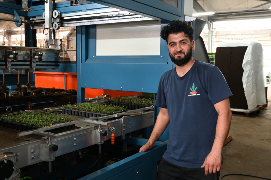 'In 2015 zijn we gestart met één machine en die stond destijds op onze locatie,' vertelt Martin Vermeer, directeur van Oppotbedrijf.nl. 'De karren met planten kwamen onze kant op. Logistiek bleek dit niet optimaal, waardoor we al korte tijd later onze machine installeerden bij Griffioen op het bedrijf. Deze ene machine werd al vlot uitgebreid met een tweede machine op een andere locatie.' Om de grote hoeveelheid planten goed te kunnen verwerken, is aan de lijn een robot toegevoegd en deze automatisering wordt in de toekomst verder uitgebreid.'