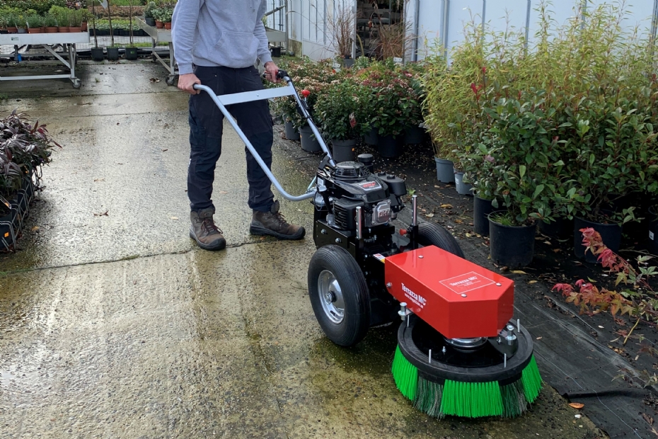 De Geotex Pro voor het reinigen van grond- en worteldoek heeft zijn sporen al verdiend. Het laatste nieuwtje op dit front is dat de Geotex is uitgebreid met een Omni Pro-versie. Deze kan zowel gronddoek als beton en asfalt reinigen op kwekerijen en in tuincentra. 'Vanuit de markt kwam de vraag of de Geotex breder kon worden ingezet. Daarop hebben we ons aanbod aangepast. De Geotex Pro kan nu in de vorm van de Omni Pro als algemeen reinigingstoestel worden gebruikt bij kwekerijen. Of het nu om gronddoek gaat, beton, asfalt of een andere soort ondergrond. We voegen extra borstels toe, die de gebruiker zelf kan aanbrengen. Zo kan hij het toestel ombouwen van gronddoekreiniging naar verhardingreiniging.'