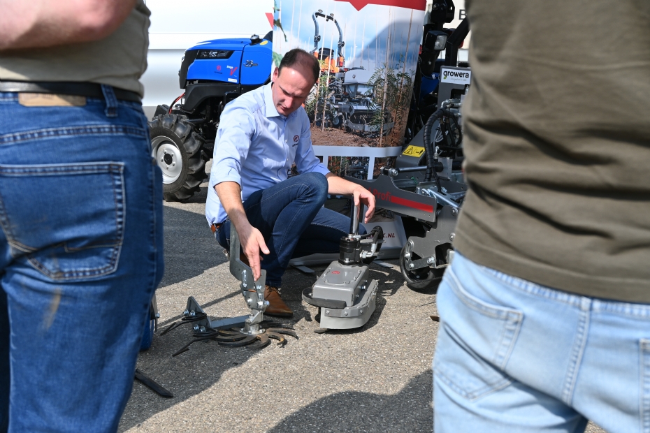 Vanuit Compas Agro een presentatie over onderzoek naar biostimulanten en manieren om de efficiëntie van meststoffen te verbeteren. Verder een demonstratie van AgroWizard, met een toepassing waarmee op grote schaal gegevens verzameld kunnen worden over onder meer stamdikte in de laanbomenteelt. Ook Otto de Vree van OdV Techniek was aanwezig met de Weed Profi schoffelmachine, die tot in detail werd gedemonstreerd.