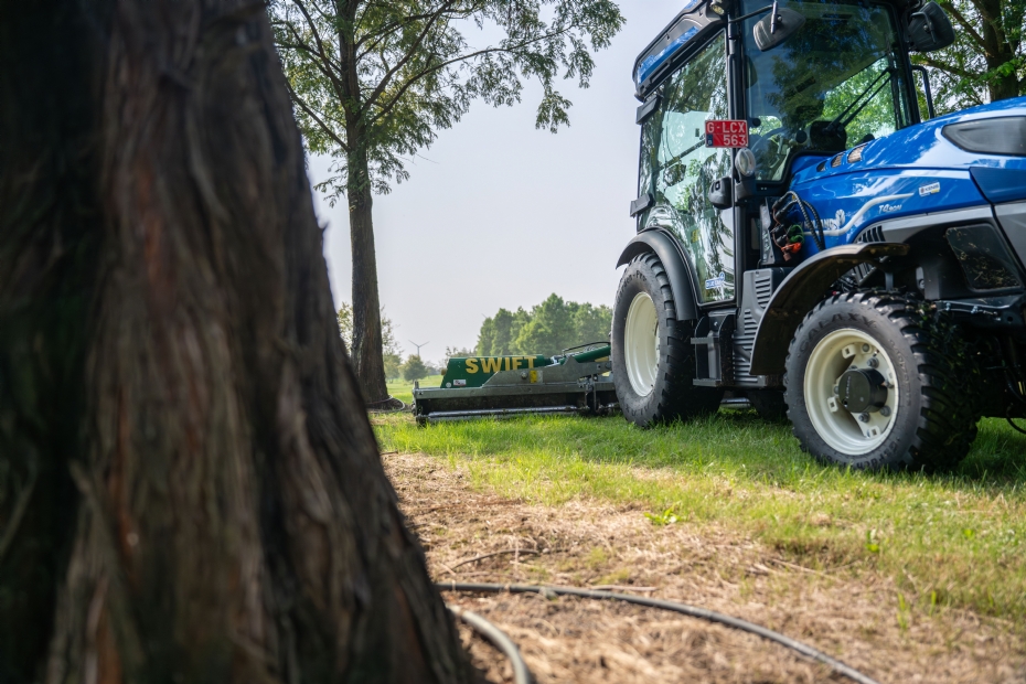 Een driedelige Major Swift MJ71-340, daarvoor koos boomkwekerij Solitair in Loenhout (B). Het areaal van deze bijzondere boomkwekerij bedraagt 150 hectare. Tijdens het groeiseizoen maaien ze hier wekelijks zo'n 90 hectare grasoppervlak. Solitair koos deze machine vooral vanwege de maaicapaciteit.