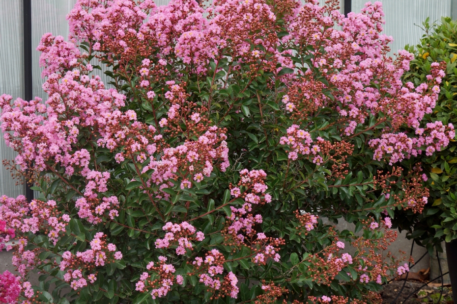 | | Lagerstroemia Eveline heeft een compacte plantvorm |
