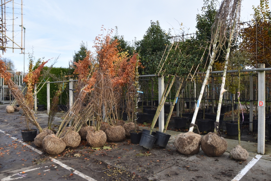 Mauritz schat dat ze op hun bedrijf met vijftien medewerkers ruim 1500 verschillende soorten bomen telen. Daarbij leveren ze ook vormbomen. Die worden in één jaar in vorm gekweekt in speciale teeltzakken. Daarna zijn ze geschikt voor uitlevering. 'Dankzij deze kweekwijze zien deze vormbomen er dan al volwassen uit, dit in tegenstelling tot vers uitgeleide vormbomen,' legt Mauritz uit. 'Zodoende zijn onze vormbomen zeer uniform en dragen ze bijvoorbeeld de frames op gelijke hoogte. Uiteraard maken we bij ons werk gebruik van een kluitenrooier en kluitennetten. Alhoewel, we hebben ook percelen die we als blote wortel rooien en voor aflevering opkuilen in zand. Ik vind dat verreweg nog altijd de beste methode om het uitdrogen van de gevoelige boomwortels te voorkomen.'