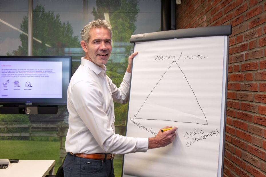 De directeur business development & sustainability tekent daar direct bij aan dat geen enkele adviseur, toeleverancier of fabrikant op iedere vraag een passend antwoord paraat heeft. 'Daar gaan we uiteraard wel naar op zoek. Onder andere door praktijkdemo's en proeven te bezoeken of daarin het voortouw te nemen. Dat blijkt ook uit onze betrokkenheid bij de projecten 100% Groen Geteeld in de vruchtgroenten- en sierteelt. We zijn ook erg blij met onze betrokkenheid bij Expert Centre Live en de proeven die hier in april zijn opgezet om door te gaan met het vergroeningsbeleid. Maar daar weet Eduard veel meer vanaf dan ik.'