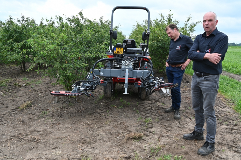 Ook Van Tuijl Innovations stond op het enigszins winderige terrein met de roterende schoffelmachine van WEEDELETE. Door een ondiepe bewerking verwijdert de schoffelmachine op ecologische wijze onkruid tussen bomen en andere gewassen. Deze manier van schadevrij schoffelen tussen bomen wordt uitgevoerd met behulp van hydraulisch gestuurde roltasters. Deze gebogen armen met daaraan een dubbele rij kleinere zachte wieltjes zorgen ervoor dat de zwenkers strak om de bomen worden geleid en daarna snel terugkomen in de uitgangspositie. Dit systeem is volgens Van Tuijl Innovations geschikt voor bomen in alle levensfasen, van spillen tot volgroeide bomen, maar ook voor struiken, coniferen, meerstammigen etc.
