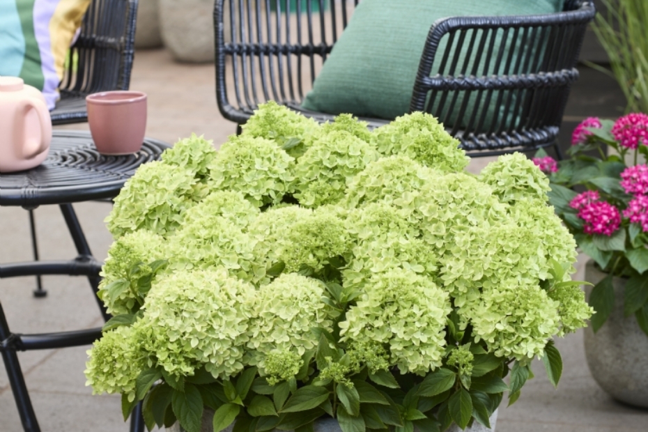 Voor het eerst gepresenteerd op de Plantarium van dit jaar: Hydrangea paniculata Groundbreaker Greeny en Groundbreaker Ruby. Ruby begint met een witte bloei die zich in de loop van de zomer verkleurt naar een intens rood, terwijl de variëteit Groundbreaker Greeny permanent groen blijft. Met de uitbreiding van het concept met deze twee variëteiten hebben consumenten nu de keuze uit unieke, bodembedekkende hortensia’s. Net als de eerste variëteit zijn ook de twee nieuwe variëteiten extreem winterhard en bijzonder onderhoudsvriendelijk. Vanaf 2026 zullen Groundbreaker Green en Groundbreaker Ruby in de handel verkrijgbaar zijn – jaarrond in potmaat P14 en als bloeiende waar in de zomer in de maten P17, P19 en P23. Met de uitbreiding van het concept met twee nieuwe variëteiten viert Schoemaker opnieuw een veredelingssucces. De variëteiten Blush, Greeny en Ruby combineren innovatie, kleurvariatie en eenvoudig onderhoud en worden zo een absolute must-have voor het komende seizoen.