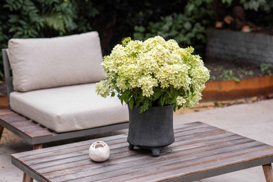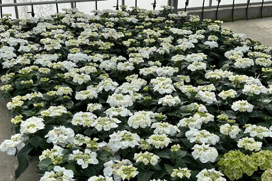 Hydrangea paniculata Groundbreaker Greeny ('LC NO24'PBR) EU 20242619De andere nieuwe kleurvariëteit binnen het Groundbreaker-concept is Greeny. Deze wordt van juli tot november volledig bedekt met mooie, groene bloemen, die zich gelijktijdig vormen en de plant als een groene deken bedekken. Ook de optie om Blush, Ruby en Greeny te combineren in de border is een aanwinst voor consumenten.Licentiehouder: Plantipp Veredelaar: Alex Schoemaker - Living Creations Onder meer verkrijgbaar bij: Alex Schoemaker, Hoogenraad Handelskwekerijen, Arie Bouman