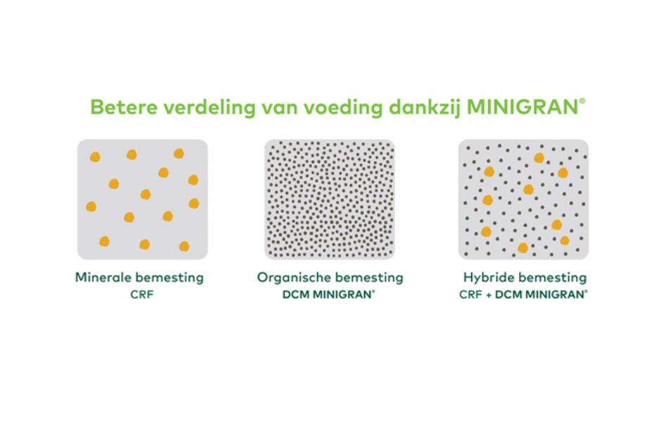 Tijdens de DCM Innovation Expo 2025 bij Boot&Dart Boomkwekerij presenteerde DCM meerdere voorbeelden van hybride bemesting. Dit is een combinatie van organische DCM meststoffen en gecoate minerale meststoffen (CRF). 'Er zit een mooie, complementaire werking tussen de twee,' vertelt Bas Nieuwesteeg, Business Development Manager bij DCM . 'Met organische bemesting kun je voedingsstoffen veel gelijkmatiger verdelen in het substraat, dit is heel belangrijk voor een goede start van de teelt. Daarnaast is er bewezen minder uitspoeling van voedingsstoffen met organische bemesting. Voor een langer duurwerking daarentegen, kunnen telers vertrouwen op CRF.'