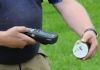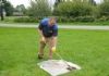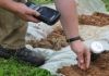 Arthur Rondeel van het bedrijf Econsultancy is bezig met het verzamelen van grondmonsters op het toekomstig tracé van een nieuw riool in Doetinchem.