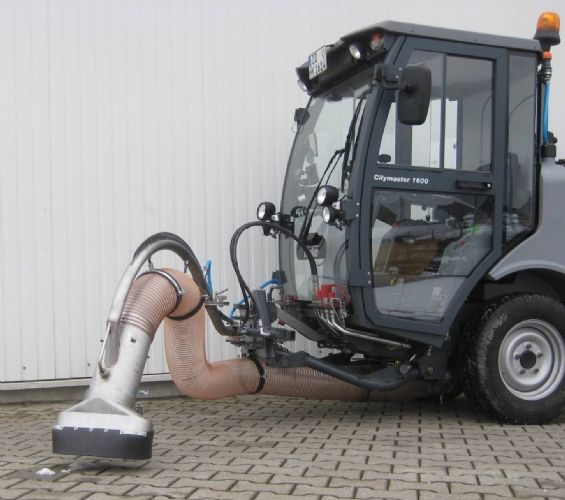 De Hako Citymaster 600 is uitgerust met een inventief snel-wissel-systeem waardoor de veegborstels in een handomdraai zijn te verwisselen voor een speciale zuigarm waarmee de groen- en uitlaatstroken gereinigd worden'