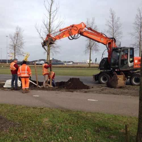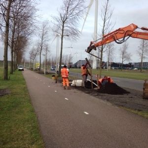 Het uitvoeren van rooiwerkzaamheden, grondverbetering, planten van zestig bomen en nazorg langs Westpoortweg Amsterdam.