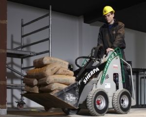 Deze compacte lader is naast verbrandingsmotor ook te verkrijgen in elektrische variant. De Sherpa 100 Eco is 76 centimeter smal en wordt aangedreven door een voorop gemonteerd accupakket van 360 Ampère. De machine en aanbouwwerktuigen worden in eigen beheer gemaakt.