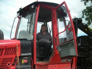 'Onze Komatsu grijpt de boom vast, zaagt deze zo dicht mogelijk bij de grond af, tilt de boom op, kantelt hem en zaagt hem in lengtes van 2 of 3 meter', vertelt medewerker Bram van den Nagel als Boomzorg een kijkje neemt in het buitengebied tussen Waalwijk en Elshout, waar Van den Nagel essen velt.