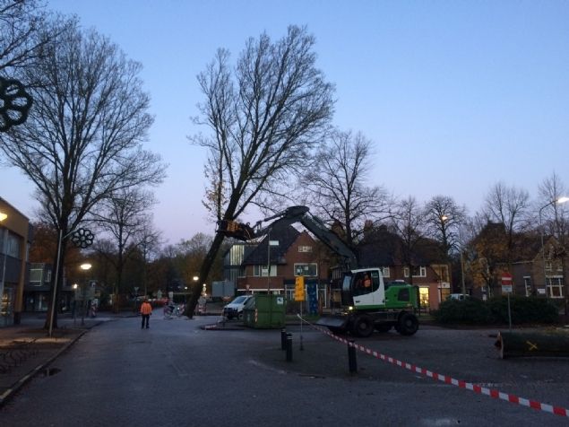 Vlotte klus Wegens de vele winkels op het Martinusplein was het zaak om het rooien van de bomen zo snel en net mogelijk af te handelen. Maandagochtend is om 07:00 het werk aangevangen en rond 10:30 was het werk afgerond. Precies op tijd voor de opening van de winkels om 11:00.