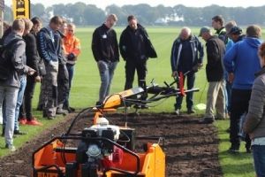 Twee themademonstraties Nieuw tijdens deze negende editie zijn ook de centrale themademonstraties. Gerrit Klop van DCM, het andere organiserende bedrijf, geeft uitleg: 'In de ochtend laten we stapsgewijs de verschillende facetten rond de aanleg van een nieuw gazon zien, van bodemanalyse en -bewerking tot graszoden leggen. Vervolgens staan 's middags onderhoud en herstel op het programma met de jaarlijkse opknapbeurt als insteek; bemesten, maaien, verticuteren, afzuigen, doorzaaien, werkelijk alles komt aan de orde. Dit wordt echt uniek en enorm interessant voor hoveniers.'
