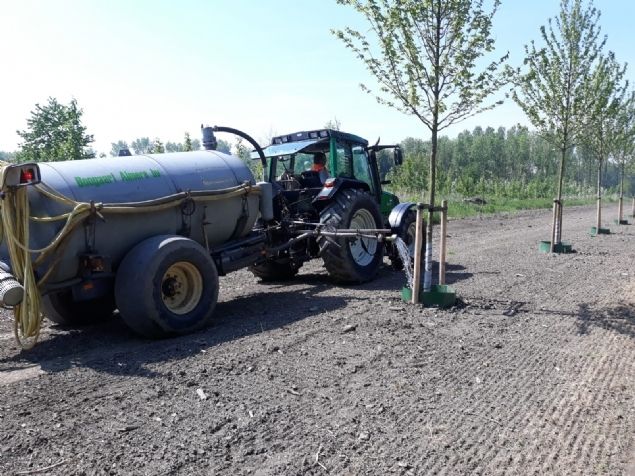Zo heeft Verheij Integrale Groenzorg bij het planten van de bomen aan de Maarsseveensevaart in Maarssen een extra buis in de grond geplaatst voor toevoer van water. Ondanks dat moet de jonge aanplant extra water hebben, ook van boven af. Groenbedrijf Verheij heeft in Stichtse Vecht een bewateringswagen ingezet die ook sproeit en vanuit de cabine van de tractor bediend kan worden.
