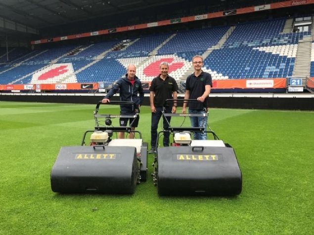 Het is de eerste keer dat het vrouwenvoetbalelftal een wedstrijd in Heerenveen spelen. In de aanloop naar dit duel heeft Milati Grass Machines Henk Schreuder, de Fieldmanager van SC Heerenveen, een Allett C34 geleverd om met twee machines de pitch perfect te prepareren voor de Oranje Leeuwinnen. Afgelopen vrijdag hebben Schreuder en Dave Allett gezamenlijk de eerste banen in het stadion gemaaid.