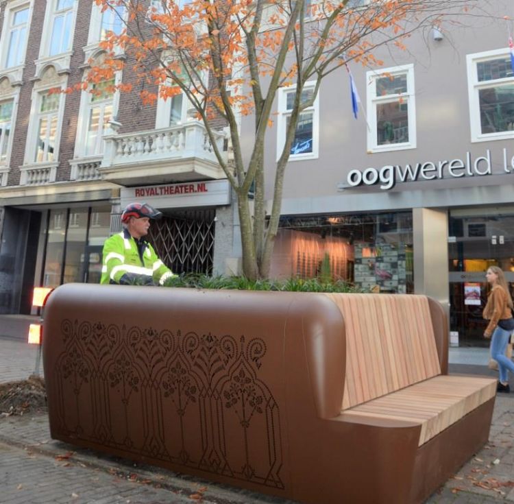 De vader van Arjan Zoontjens van Zoontjens Boomprojecten legt de laatste hand aan de beplanting van nieuwe boombakken in Roermond. Na een pilot kreeg de Hamstraat in november zes unieke boombakken. De bakken hebben een houten zitgelegenheid aan één kant en een perforatie waar zacht licht uitstraalt aan de andere drie kanten. Burobol maakte het ontwerp, Grijsen park & straatdesign realiseerde het en Zoontjens zorgde voor de invulling van de bakken met Zelkova's en onderbeplanting van Carex morrowii (zegge). De boombakken zijn beschikbaar voor lease voor plekken die tijdelijk worden ingericht, via Greenovations, dat in oktober werd opgericht. De kans dat Roermond met de bakken gaat schuiven lijkt klein. De perforatie in deze bakken is namelijk een interpretatie van een patroon getekend door de beroemde Roermondse architect Cuypers, die in de Hamstraat heeft gewoond.