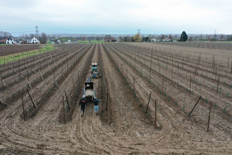 Met behulp van enkele zzp'ers en een handjevol Poolse hulpkrachten wordt in Bemmel -ondanks de modderige bodem - in sneltempo een pruimenboomgaard met 5000 bomen uit de grond 'getrokken'. De wortels van de zelfgekweekte boompjes worden tegen de komende vorstdagen beschermd met een extra laagje grond. De komende weken volgen nog eens 3000 jonge bomen en op een perceel in Oosterhout heeft de jonge ondernemer Wim Bunt (23) ook al 3000 pruimenbomen geplant. De kersverse fruitteler behoort daarmee in één klap tot de vijf grootste pruimentelers van ons land. Onder het label Royal Plums richt hij zich vanaf 2020, als de eerste pruimen kunnen worden geplukt, op de Nederlandse consument. Volgens hem is er nog steeds een tekort aan pruimen van Nederlandse bodem. Maar de eerste winst, zegt hij, is voor de inwoners van het Knooppunt Arnhem-Nijmegen (KAN). Zijn bomen, 11.000 in totaal, halen namelijk 220 ton CO2 uit de lucht.