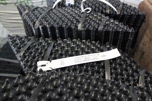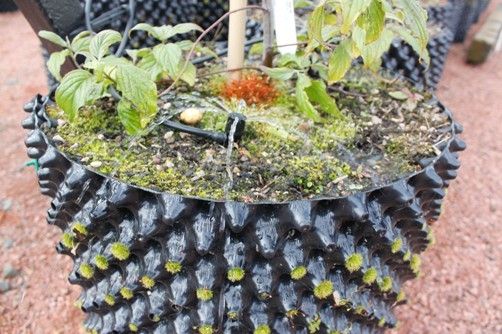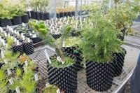 Grotere airpotten op het buitenterrein van de kwekerij.