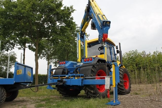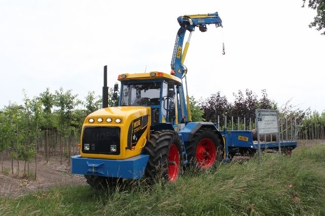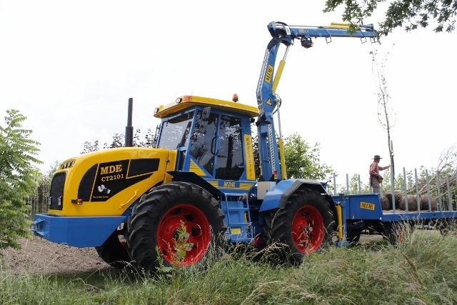 | | MDE Machinebouw in Echteld, producent van machines voor de boomkwekerij, heeft een noviteit in huis: een stoere kniktrekker voor het laden en vervoeren van bomen. |