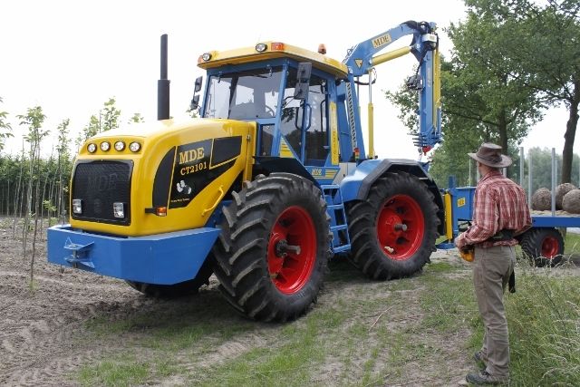 MDE Machinebouw in Echteld, producent van machines voor de boomkwekerij, heeft in eigen beheer een kniktrekker, de MDE CT2101, geproduceerd. Voor het vakblad Boom in Business gaf directeur Mazinus van Dijk een korte demonstratie van het kunnen van dit blauw-gele werkpaard. Zie onderstaande fotoreportage - Tekst en foto's: Ruud Jacobs.