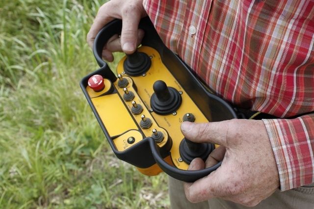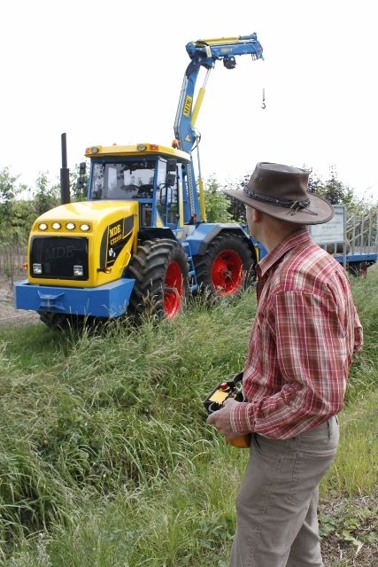 | | De radiografische besturing van deze trekker is van Hetronic. De zender heeft een batterijvoeding met een werkingsduur van ongeveer 6 uur. In de cabine zit een lader met een tweede batterij. |
