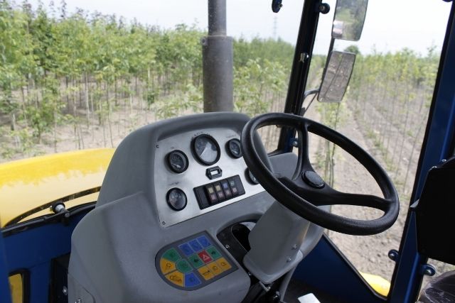 | | De smalle cabine is bewust gekozen om op de kwekerij goed tussen de kronen van de bomen door te kunnen rijden. |