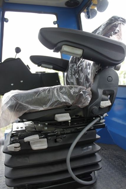 | | De luchtgeveerde Grammer stoel staat op een draaiplateau en kan hierdoor 360 graden ronddraaien. In de armleuning van de stoel zit rijbediening d.m.v. een joystick. |