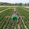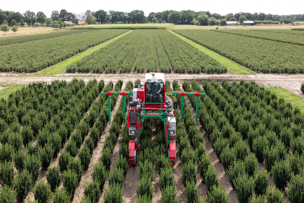 Beter zicht De machine bevat verticale spuitstangen voor het spuiten van insecticiden in planten tot 2,25 meter hoogte, aldus Ezendam. 'Het is mogelijk om hiermee - gedoseerd - kunstmest te strooien op elke rij afzonderlijk. De snelheid werkt op grond van GPS met taakkaarten. De machine bevat een speciaal cabine van ongeveer 80 centimeter in hoogte verstelbaar. Op die manier heeft de gebruiker een beter zicht op de planten en is deze geschikt voor transport op de openbare weg.'