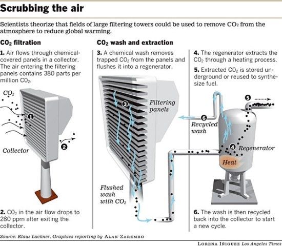 Onderzoeker Dr Klaus Lackner van Columbia University heeft een kunstboom ontwikkeld die veel meer CO2 zou kunnen afvangen dan een echte boom. Het apparaat dat Lackner heeft uitgevonden lijkt uiterlijk absoluut niet op een boom, maar heeft meer weg van een doelpaal met jaloezieën.