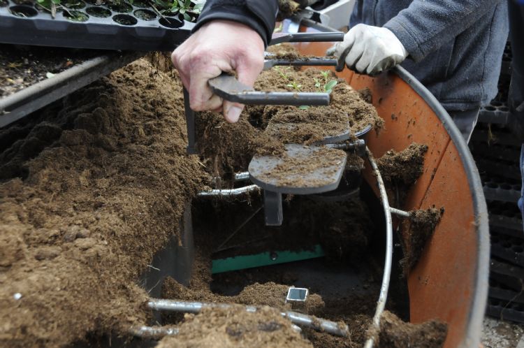 Roy en zijn vader hebben Javo-dealer Ed Schalke benaderd met de vraag om een zo goed mogelijke opstelling te creëren voor het oppotten van hun plantgoed. Na een paar gesprekken maakte Ed Schalke een paar opstellingstekeningen, zodat er ze inzicht kregen in hoe de machines moesten komen te staan. Uiteindelijk werd er gekozen voor een Javo Big Bale-voorraadbunker. Vanuit deze bunker gaat de grond in een Javo Plus M2.0-oppotmachine. Aan deze machine zijn verschillende aanpassingen op maat gedaan, zodat het voor de opstelling nog beter uitkomt. Als de gevulde potten uit de Javo Plus M2.0 op de Ed Schalke-transportbanden komen, worden de plantjes erin gepoot en gaan ze naar een door Ed Schalke aangepaste Visser-buffertafel. Door de buffertafel aan te passen met een pneumatische voorverzamelaar, is de capaciteit met circa 50 procent vergroot. Dat geldt ook voor de capaciteit van de hele oppotlijn ten opzichte van de oude opstelling. Daarna pakt de heftruck de potten op en brengt ze naar het veld.