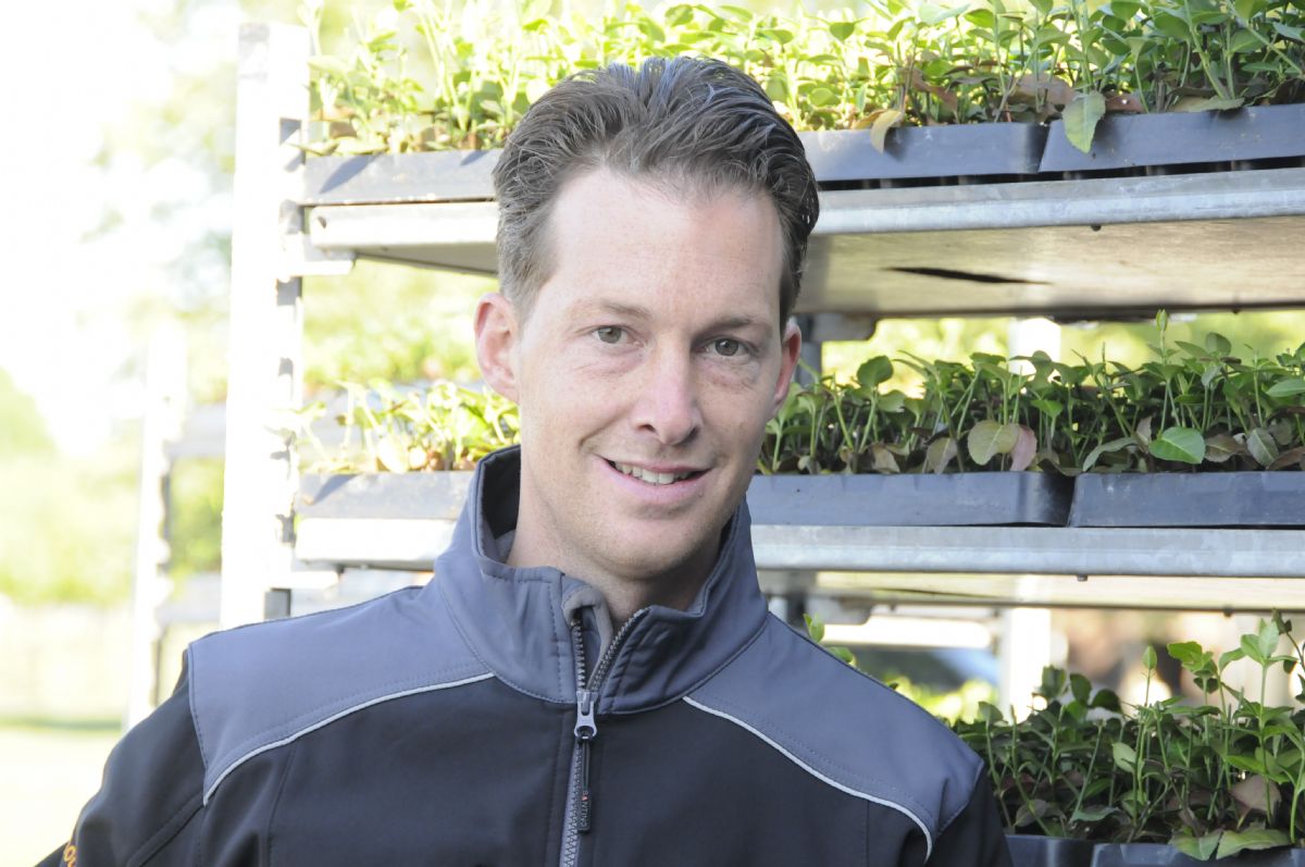 Roy Schapendonk: 'Wij zitten aan twee kanten van de Hooghoutseweg in Biezenmortel. Aan deze kant, rondom de oude boerderij waar ik nu woon en vroeger mijn ouders, kweken we 1,5 liter-heesters en aan en aan de andere kant de siergrassen en heesters in p9. Wij stekken daarbij alles zelf. Dat heeft een aantal redenen. Allereerst kunnen we op die manier zelf de kwaliteit in de hand houden en de stekken minimaal twee of drie keer terugsnoeien. Daarnaast is er ook een goed rendement te maken op het maken van stek. De derde reden is dat we er gewoon ook tijd voor hebben. Het past in onze arbeidsfilm.'