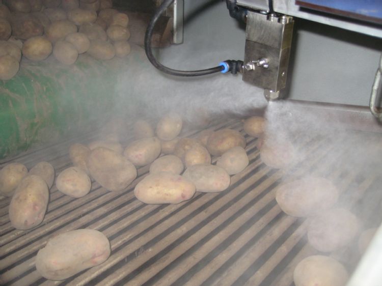 'Overal waar gekoeld wordt, wordt vocht onttrokken aan hetgeen er in de koeling ligt', legt Adriaan van de Ven, directeur van Agricult, uit. 'De techniek is relatief gezien heel goedkoop en we verkopen deze al jaren, vooral aan sorteerbedrijven met pootaardappelen en uien. Voor boomkwekerijen is het ook een fijne oplossing. De druppeltjes zijn kleiner dan 20 micron en daardoor heb je een droge mist. De Dry Fog gebruikt relatief weinig elektriciteit; een kleine compressor is voldoende. De druppeltjes zijn zo klein, dat het waterverbruik slechts 0,5 tot 2 liter per uur bedraagt. Het vergt weinig onderhoud en je hebt veel waar voor je geld, zoals ook onze klanten beamen.
