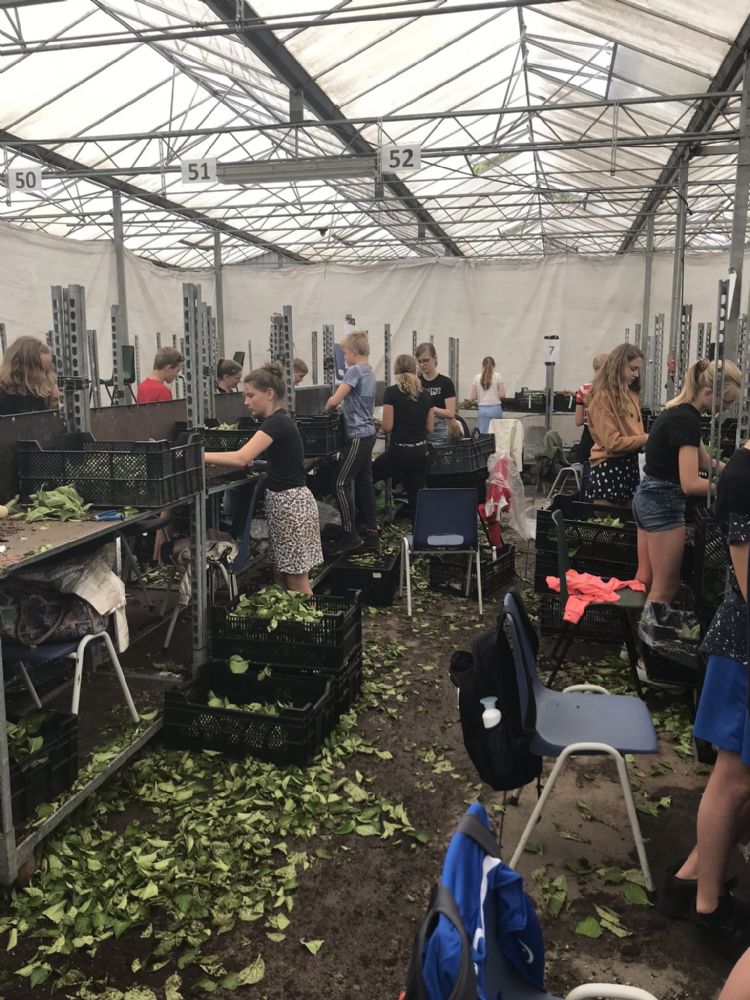 | | Scholieren aan het werk in de ruimte waar de stekken gemaakt worden |