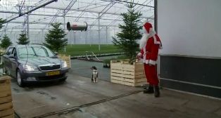 Geen zin om urenlang te voet tussen honderden kerstbomen te zoeken naar dat ene mooie exemplaar? Er is een oplossing! In Reeuwijk (Zuid-Holland) heeft boomkweker Marcel van Leeuwen dit jaar de eerste overdekte kerstbomendrive-in ter wereld ingericht. Volgens Van Leeuwen heb je in de Verenigde Staten ook wel plekken waar je voor een kerstboom de auto niet uit hoeft, maar nergens met een dak er boven in een kas. In Reeuwijk rijdt de kerstboomklant de kassen van Van Leeuwen binnen, kiest al rijdend een boom uit en op het eind van de speurtocht hoeft de klant alleen nog maar te betalen. "Binnen twee minuten kun je weer buiten zijn", aldus Van Leeuwen. Klik hier voor het bekijken van een filmpje van de kerstbomendrive-in.