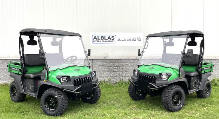 Naast een brede range gebruikte golfwagens, levert de interntransport-specialist uit Kwintsheul ook een nieuwe transporter van Frisian Motors. Het gaat hierbij om de Leffert FM40 die is uitgevoerd met een kenteken, waardoor het voertuig op de openbare weg mag rijden. De onderhoudsvrije FM40 heeft een hoge vering, lichtmetalen velgen en een kantelbare laadbak. De maximumsnelheid is 45 kilometer per uur en hij heeft een actieradius 50 à 60 kilometer. Verder is de transporter voorzien van wegverlichting voor en achter en van schijfremmen rondom. Een uitvoering met trekhaak en/of brede banden is een optie. Hij is eenvoudig op te laden met meegeleverd laadsnoer van 220 volt via de geïntegreerde acculader. 'De Leffert FM40 is direct leverbaar. Er zijn daarnaast diverse andere modellen beschikbaar,' laat Alblas weten.